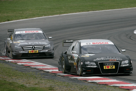 At the eighth DTM round at Brands Hatch, Audi celebrated their fourth win of the 2008 season. In unstable weather conditions Timo Scheider defended an extremely narrow lead against Mercedes driver Paul di Resta on the British circuit. In front of 26,800 spectators (throughout the weekend) Timo Scheider thus extended his leadership of the standings to nine points. Mattias Ekström shone with a brilliant recovery from seventh to third place.