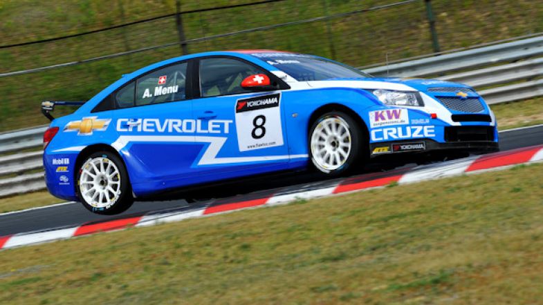 Menu briefly built up a lead in his Chevrolet Cruze, but Michelisz closed in to the crowd’s delight and challenged the Swiss driver for a few laps before falling back to finish in second position, one second down.