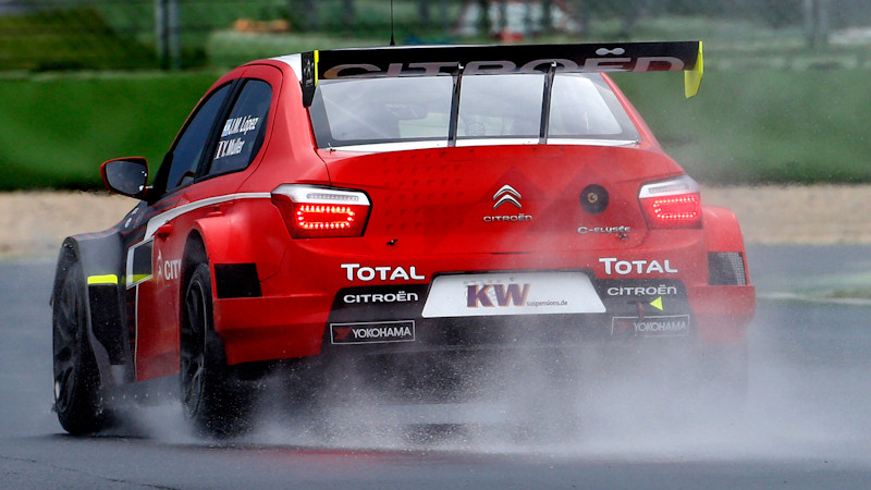 Reigning champion José María López was fastest of all in the 30-minute test session on Friday at the Circuit Paul Ricard, leading Citroën Racing team-mate Yvan Muller by just under half a second, with Norbert Michelisz, now in a factory-run Honda Civic, their closest threat.