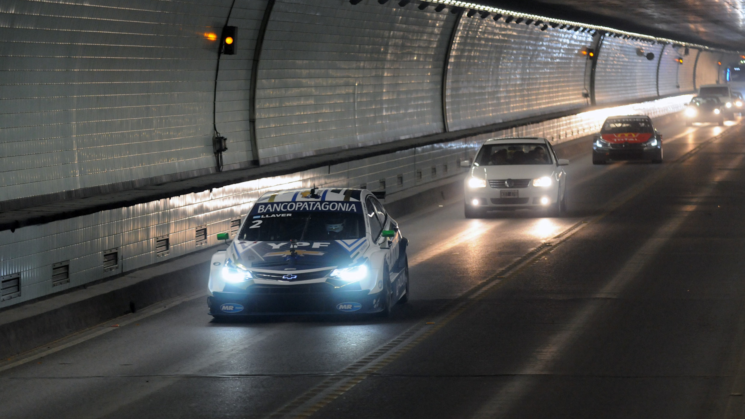 The action started on Thursday evening, as for the third consecutive year, seven Super TC 2000 cars, those of Leonel Pernía of Renault, Alessandro Salerno of Escudería FE, Esteban Guerrieri of Citroen Total Racing, Bernardo Llaver of YPF Chevrolet, Javier Merlo of Fiat Petronas, and Matías Milla of Toyota Gazoo Racing Argentina and the Peugeot 408, driven by TC 2000 junior driver Agustín Lima Capitao, held a road show through the underwater 2.5 kilometre tunnel which connects Santa Fe and Paraná, the respective capital cities of the Santa Fe and Entre Ríos provinces.
