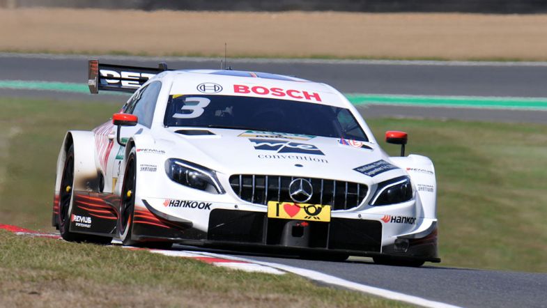The race restarted on lap four, with di Resta again holding off Paffett, while Wehrlein tried to get under the pair of them at Paddock Hill bend which allowed the Rosberg Audi of René Rast to have a run on the former champion.