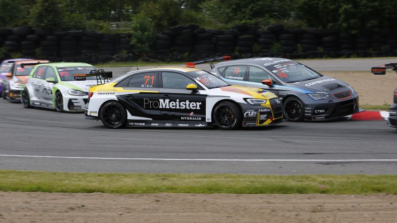 After qualifying and finishing third in Race 1, Åhlin-Kottulinsky started fourth for Race 2, but after contact with Brink’s Audi RS 3 LMS at the second turn, she was soon battle damaged and falling down the order.