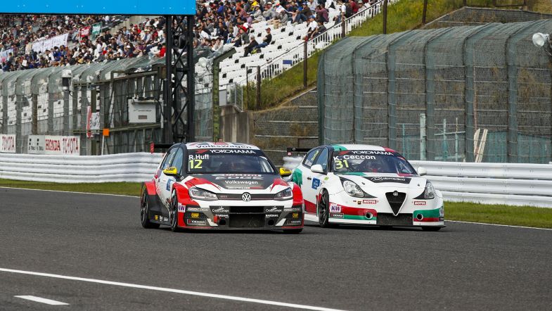 The stewards handed the Alfa Romeo the penalty and one penalty points for hitting Volkswagen driver Rob Huff at Turn 2 when fighting for eighth place.