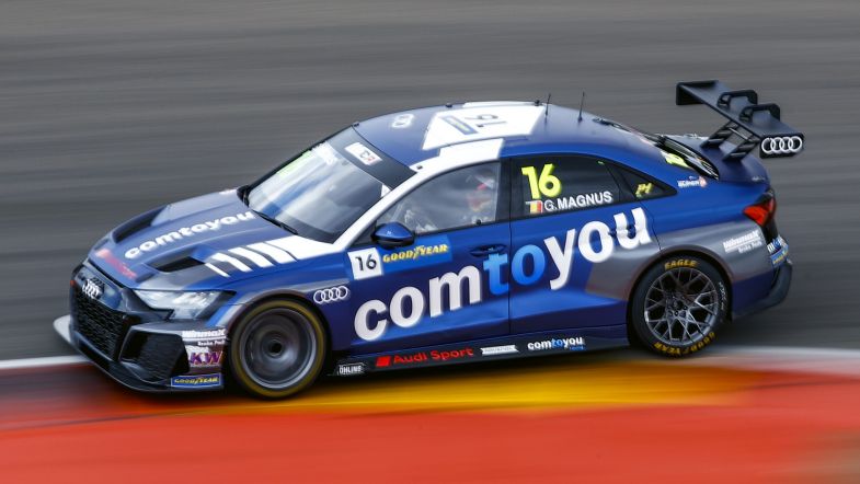Zengo Motorsport’s Dániel Nagy lost two places at the start and fell into the grips of Cyan Racing’s Thed Björk, on the move after power steering issues marred his qualifying efforts on Saturday.