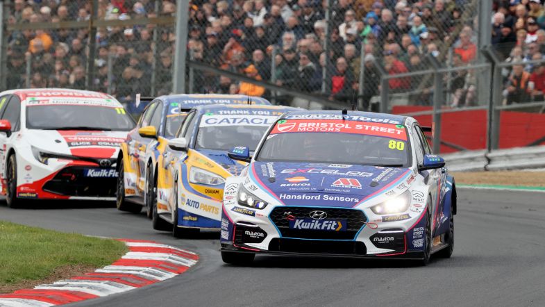 Starting from third, Ingram wasted no time in dispatching Colin Turkington before setting off after race leader Hill. Heading into Paddock Hill Bend on lap two, the Hyundai driver dived down the inside of the BMW racer and from there he controlled proceedings.