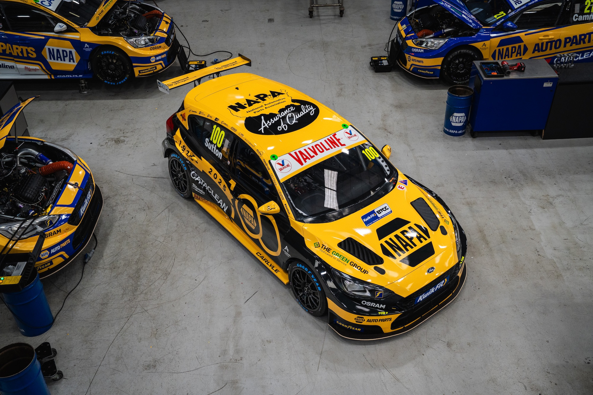Sutton, who tops the standings after a double win at Donington Park, will run in NAPA’s original black and yellow colour in celebration of 100 years of the NAPA – National Automotive Parts Association – business.