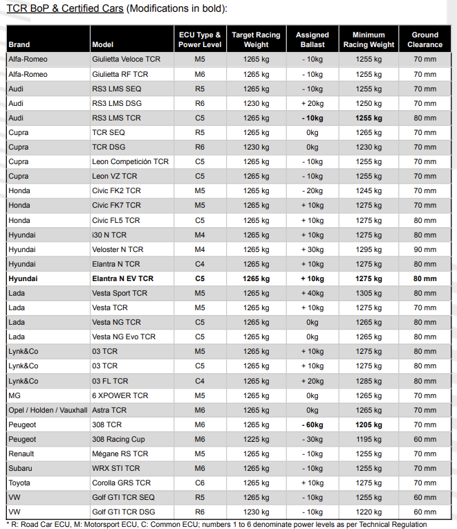 The Audi RS 3 LMS and Peugeot 308TCR models have received reduced minimum weight in the latest bulletin from WSC, the TCR rights holders.